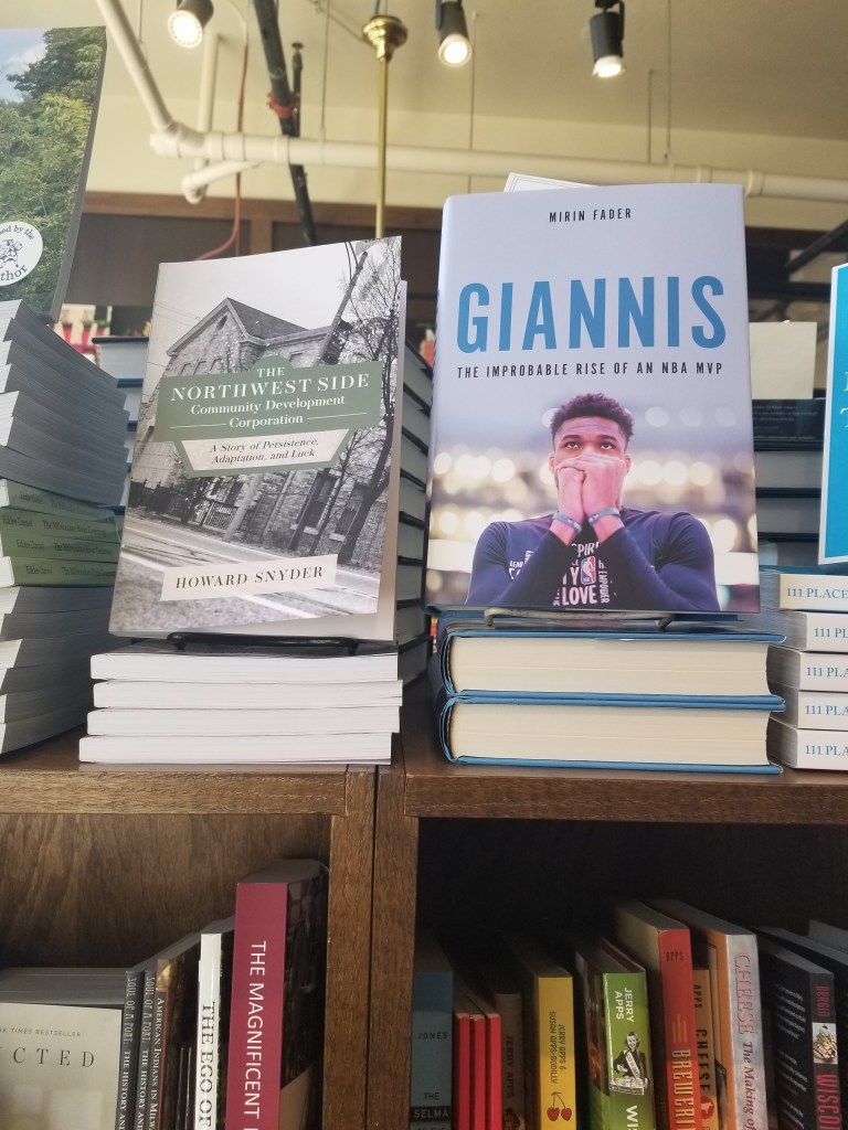 It’s pretty amazing to have Howard’s book, Northwest Side Community Development Corporation: A Story of Persistence, Adaptation, and Luck sitting right next to Mirin Fader’s new book Giannis, The Improbable Rise of an NBA MVP at our favorite local bookstore, Boswell Book Company.